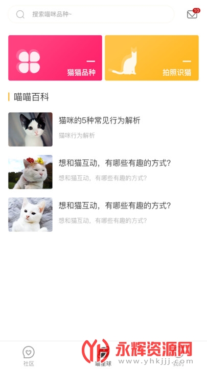 云养猫App是一款线上养猫的软件,可以在社区里获得养猫心得,各种养猫的知识,并分享各自的猫咪,与来自不同地方的猫咪爱好者相互交流,共同学习,喜欢可爱猫咪想学习养猫知识的小伙伴赶紧来下载吧!