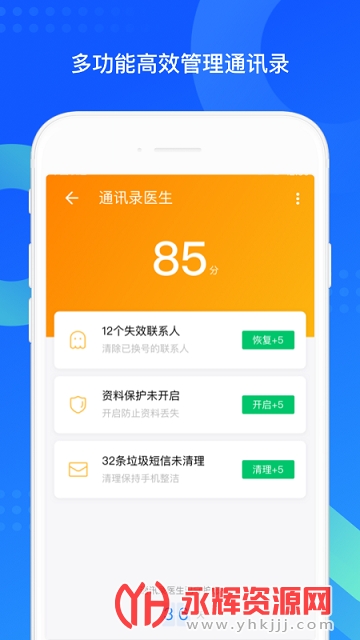 备份管理:手机通讯录一键备份至网络,随时同步回手机