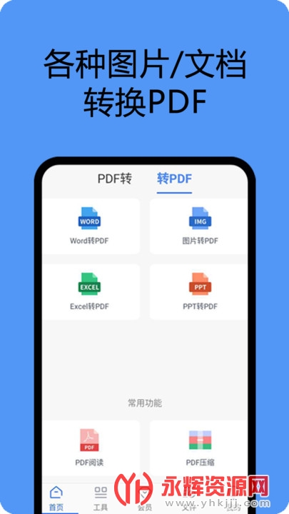 【其他转换PDF】 支持将Word、Excel、PNG、JPG、PPT等格式文档转换为PDF格式;