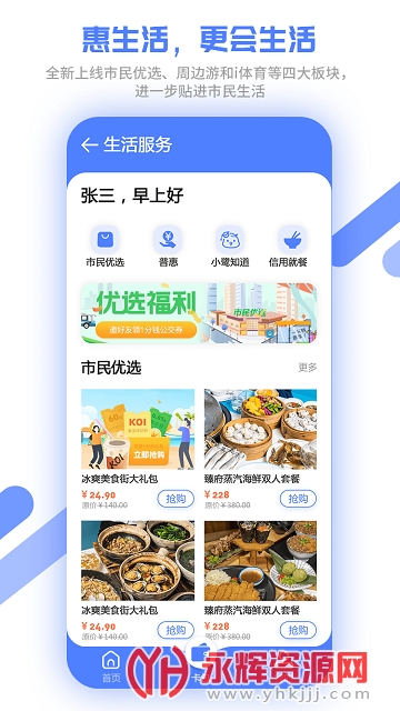 全新上线市民优选、普惠金融、周边游和i体育四大板块,进一步贴进市民生活