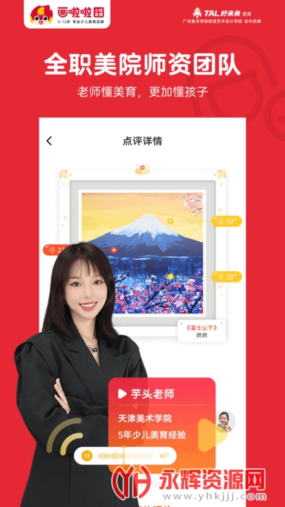 画啦啦是为5~12岁儿童专门设计的互联网美术教育产品,儿童专属的创意美术课堂。