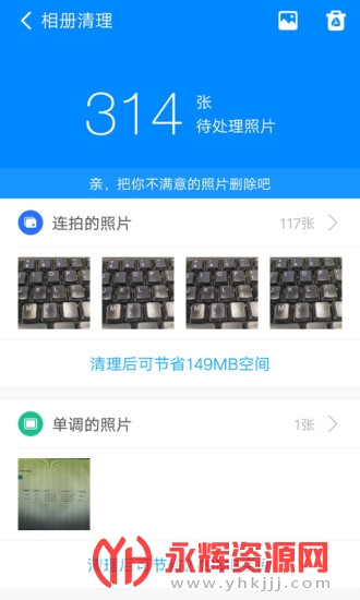 4、相册清理,为你识别多余的相似照片,能有效的提高手机的内存