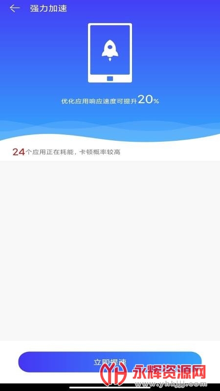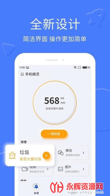 1、一键智能的加速手机,释放手机内存,瞬间清楚卡顿;