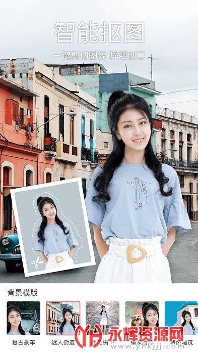 五是一键抠图:利用智能抠图工具,一键替换背景,挥洒创意。豪华轿车,壮观的风景,你都可以一键拥有!