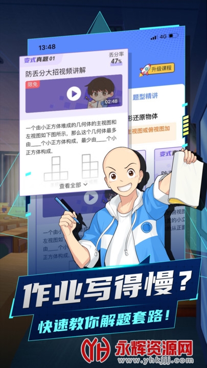 3.学练结合,AI智能教你轻松学:光看视频还不够?课后练习题来巩固!AI功能自动预测知识点掌握程度,匹配推送练习题,学练结合,由易到难,知识点像洋葱一样层层剥开,学习体验则像进阶”打怪兽“,让你爱学到根本停不下来~