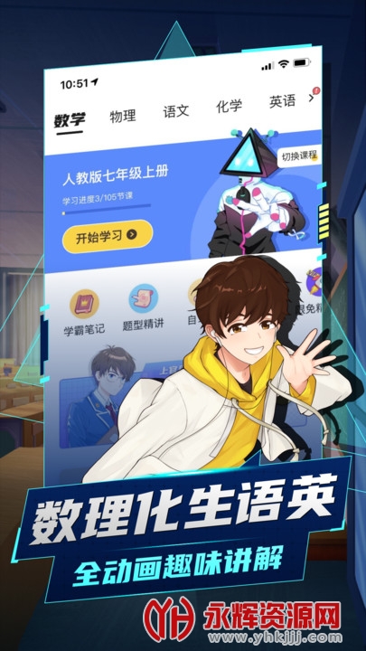 4.课程同步校内教材:小初高数学、物理、语文、化学这里都有,同步校内课本教材,单个知识点一一讲解,AI辅助难易度自由切换,满足不同阶段学生学习需求,复习、预习、考试、日常学习来洋葱全搞定!