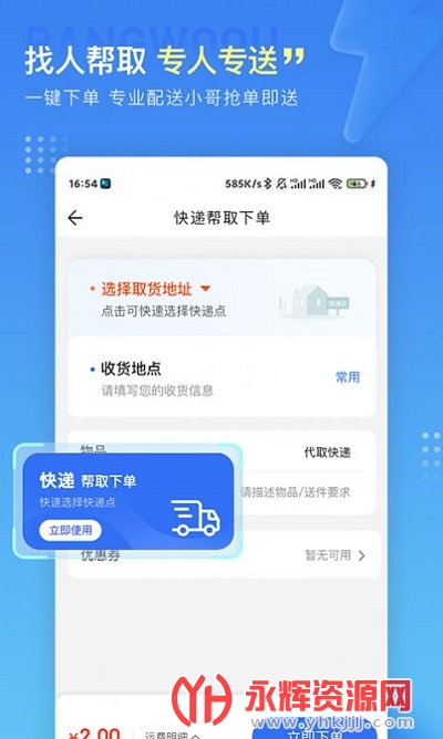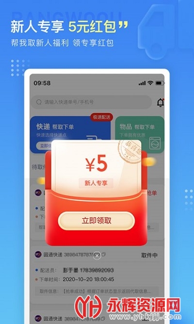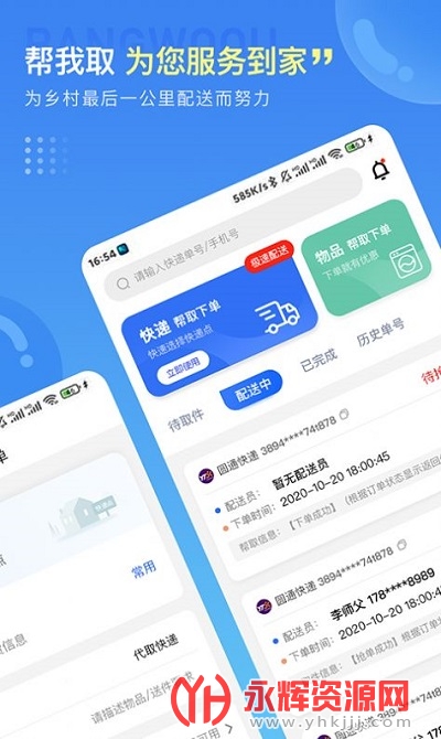 帮我取app是一款十分优质的同城跑腿服务软件。使用这款软件你可以在线寻找骑手帮你取东西,并且可以配送上门。有需要的朋友们快来永辉资源网下载吧!