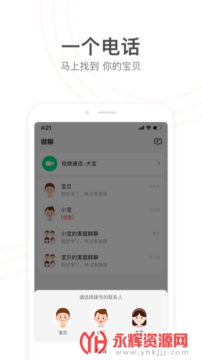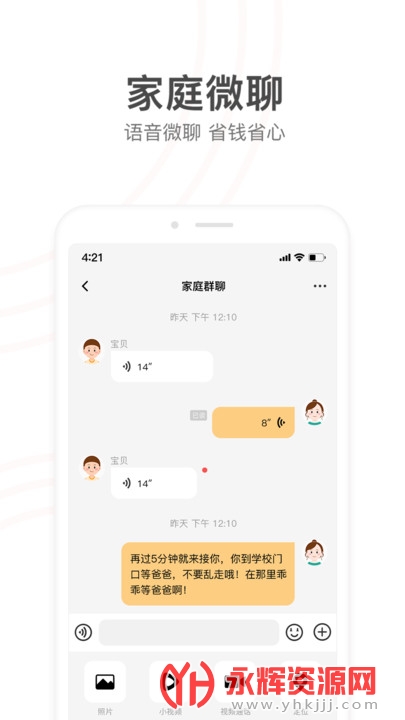手表中家长的联系方式可以自动形成一个家长圈,孩子可以实时与家长发起微聊;
