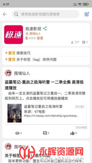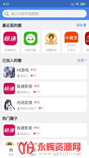 在这里可以自由的搜索内容,让app快速帮助您找到需要的资源;