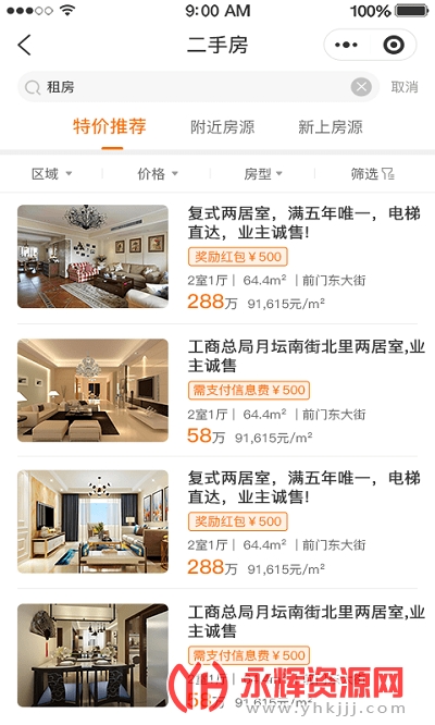 百米找房app是一款十分优质的房产服务软件。软件中有着超多优质的房源信息,你可以预约看房,找到自己心仪的房子。有需要的朋友们快来永辉资源网下载吧!