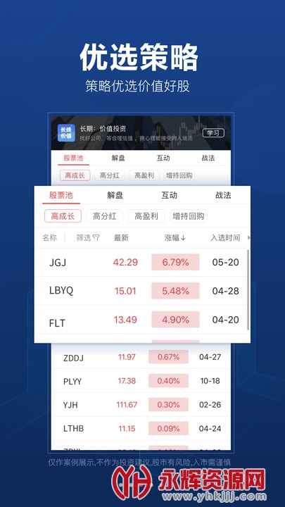 【优选策略】基本面筛选好公司好股票,技术面把握个股波段机会,轻松选股。