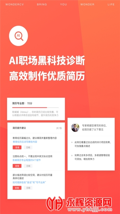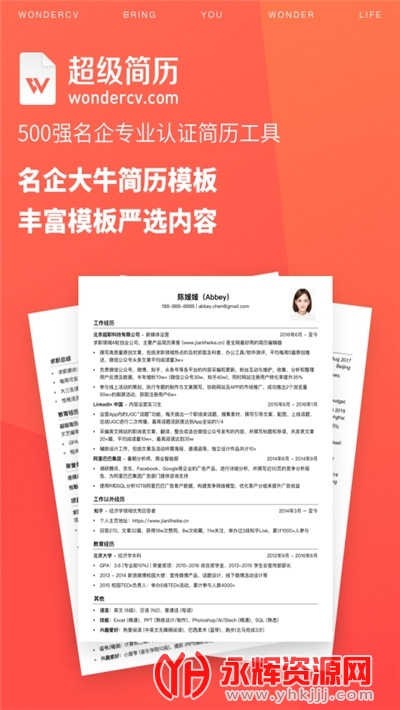 学生零经验找实习、校招、全职、跳槽… 各行业专业模板,WonderCV由来自投行咨询、BAT、以及各大500强名企的顶级导师团队联手打造,用专业的简历模板为你的职业发展护航。