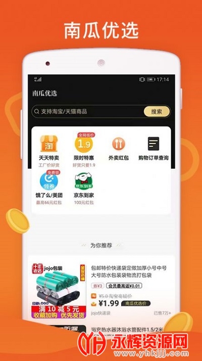 南瓜优选app是一款能帮你省下很多钱的掌上购物软件。软件中有着超多精选的商品,提供给大家都是非常优质的价格。喜欢购物的宝贝们快来永辉资源网下载吧!