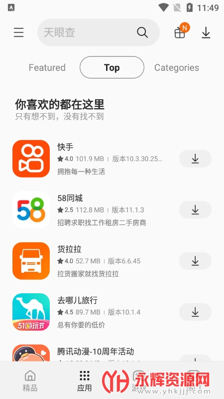 三星应用商店官方版最新版本是三星手机内置的应用下载平台,在这里有着全方位的应用和游戏下载渠道,各种手机定制小工具在这里也能找到,还在等什么呢,快来永辉资源网下载吧!