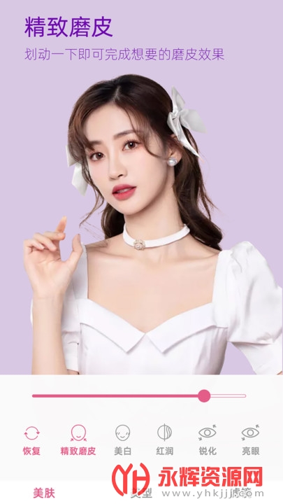 精准磨皮美白,你想要的全都有。微信视频美颜助手app智能深度学习支持实时视频,边拍边美~。包含"磨皮"、"朦胧美肤"、"精准磨皮"、"美白"、"红润"、"亮眼"、甚至还能"美牙"。
