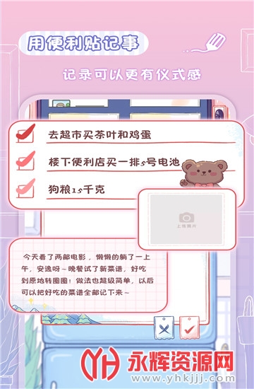 亲爱的冰箱便签app是一款多功能生活记事软件,能够帮助用户记录生活中的点点滴滴,拥有多种记录模板素材可供选择,让你的每一次记录都多姿多彩,还可以制作日程计划,添加待办事项,让生活有条不紊,使用方法简单。