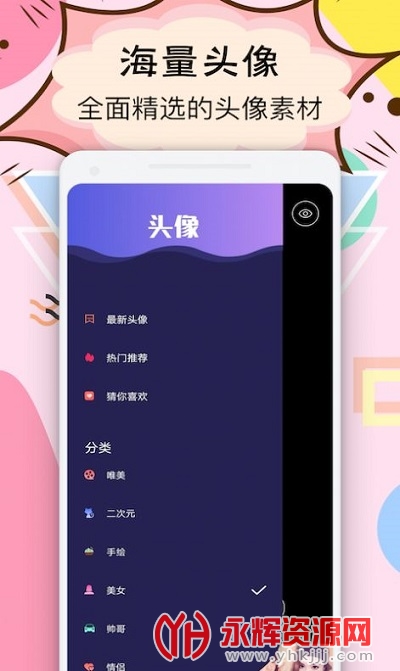 facea头像app是一款吃十分优质的头像制作应用软件。这款软件内每日更新超多精美的头像素材,用户都是可以通过软件进行免费制作的。对这款软件感兴趣的朋友们还在等什么呢?快来永辉资源网下载吧!