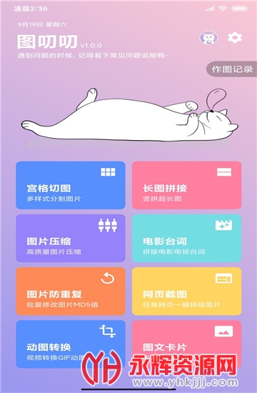 2、软件拥有宫格切图、长图拼接、图片压缩、电影台词拼接等功能,功能全面,页面整洁,无广告,需要的朋友点击下载吧。