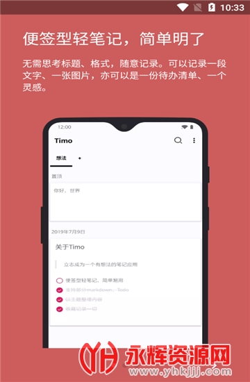 Timo笔记是一款界面美观大气的笔记软件,Timo笔记app可以随时记录你的生活日常,以及小灵感,Timo笔记可以分类,支持插入图片,记录你生活中的美好。