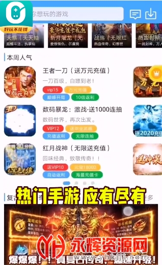 零元游戏盒子更好的为广大用户提供的手游盒子应用服务平台,用户通过这款零元游戏盒子app能够体验更多自己喜欢得游戏,而且还有海量的新游等着你来体验,有需求得朋友赶快前来下载体验一番吧!