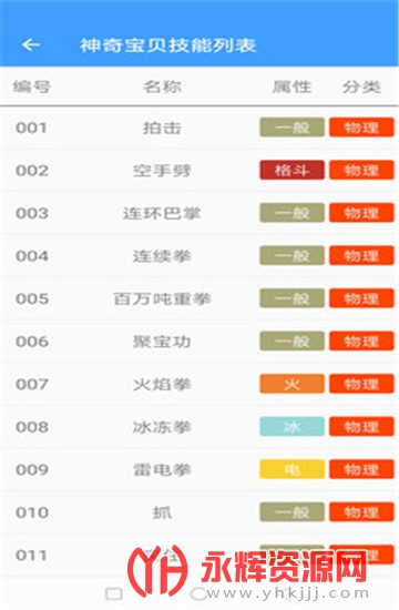 技能列表:包含了全部的宝可梦技能;