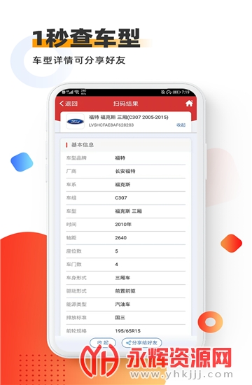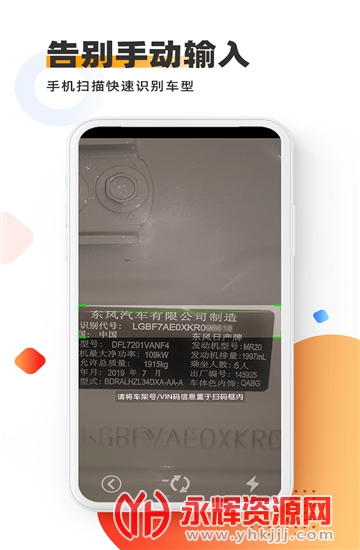 【自动识别】手机对准完整的VIN码部位扫描,即可自动识别;