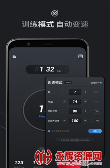 训练模式,设置想要练习的时间以及节拍,由慢到快在练习中熟练掌握节奏;