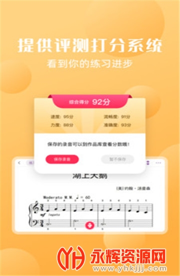 每次评测有分数反馈,好多曲谱见证你的每一次进步~