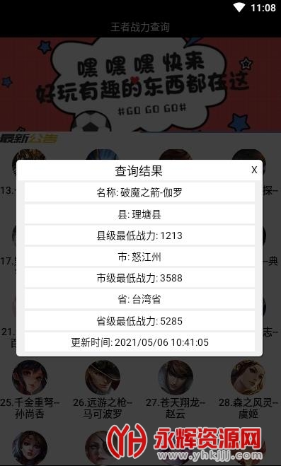 让您随时都能查询当前最新的分数排名,手机端王者荣耀战斗力查询软件,查询全国最低战力地区,