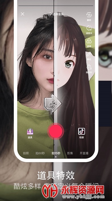 1、抖音上有各种特效,用户只需要把特效加到你的视频上即可;