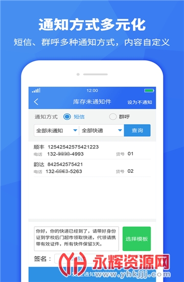 2.取件通知:支持短信、群呼等多种通知方式;通知内容自定义;
