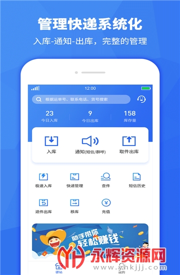 1.极速入库:支持运单号、手机号同步扫描,一次扫描即可入库;
