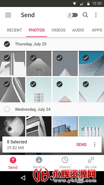 支持照片、视频、音乐,以及文档和apk文件形式