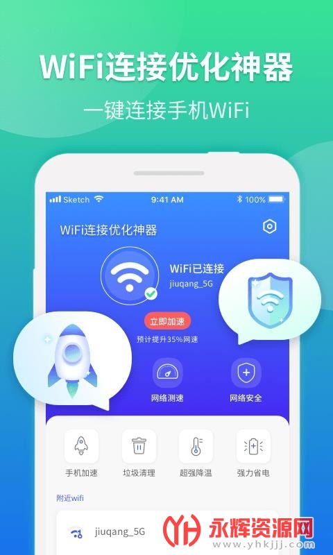 WiFi连接优化神器能够实时优化你当前WiFi的连接状态,随时随地便能够检测网络速度,它还可以监测网络状态并保护你的网络隐私,贴心好管家让你安全使用WiFi。