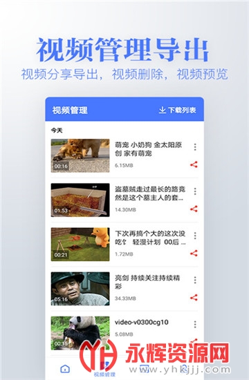2、视频管理,导出视频,分享导出,视频删除,视频预览,随意了解;