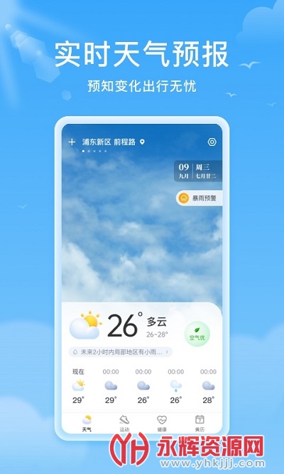 精准实时与24小时逐小时天气预报,温度变化冷暖早知道。