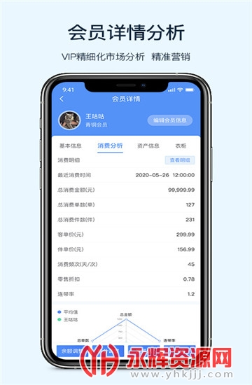 4、点击会员查看会员详情,了解会员的消费分析情况,定向进行营销