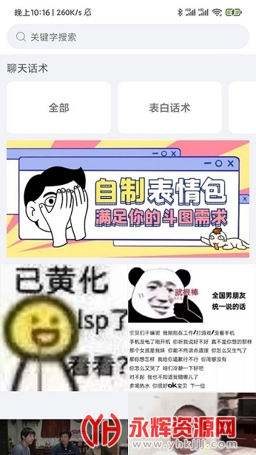 聊天斗图大师app是一款非常有意思的聊天斗图工具软件,软件中为用户准备了非常丰富的趣味表情包图片可以使用,让用户在平时与朋友聊天的时候能够格外的有意思,自由的快速输入斗图操作,强大功能,满足你的各种斗图需求,有兴趣的朋友就快来永辉下载体验吧!