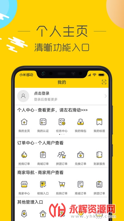 1、拥有清晰的功能入口,分类查看个人中心、订单中心、商家中心等功能,方便用户的操作;