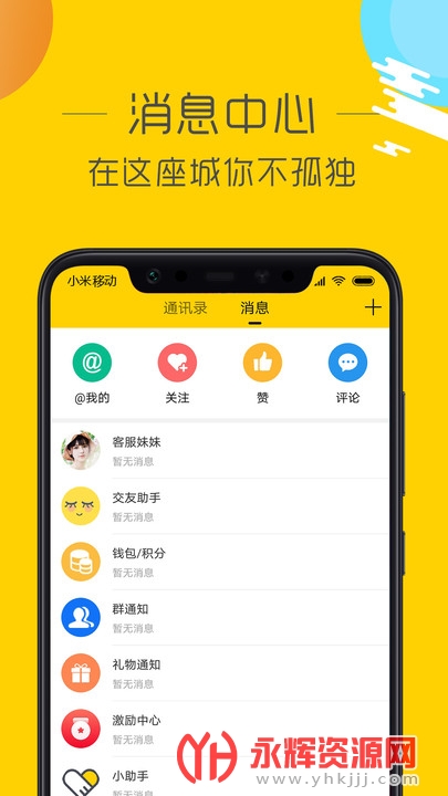 2、自动按照分类推送新消息,包括互动消息、交友助手、群通知、礼物通知等消息内容;