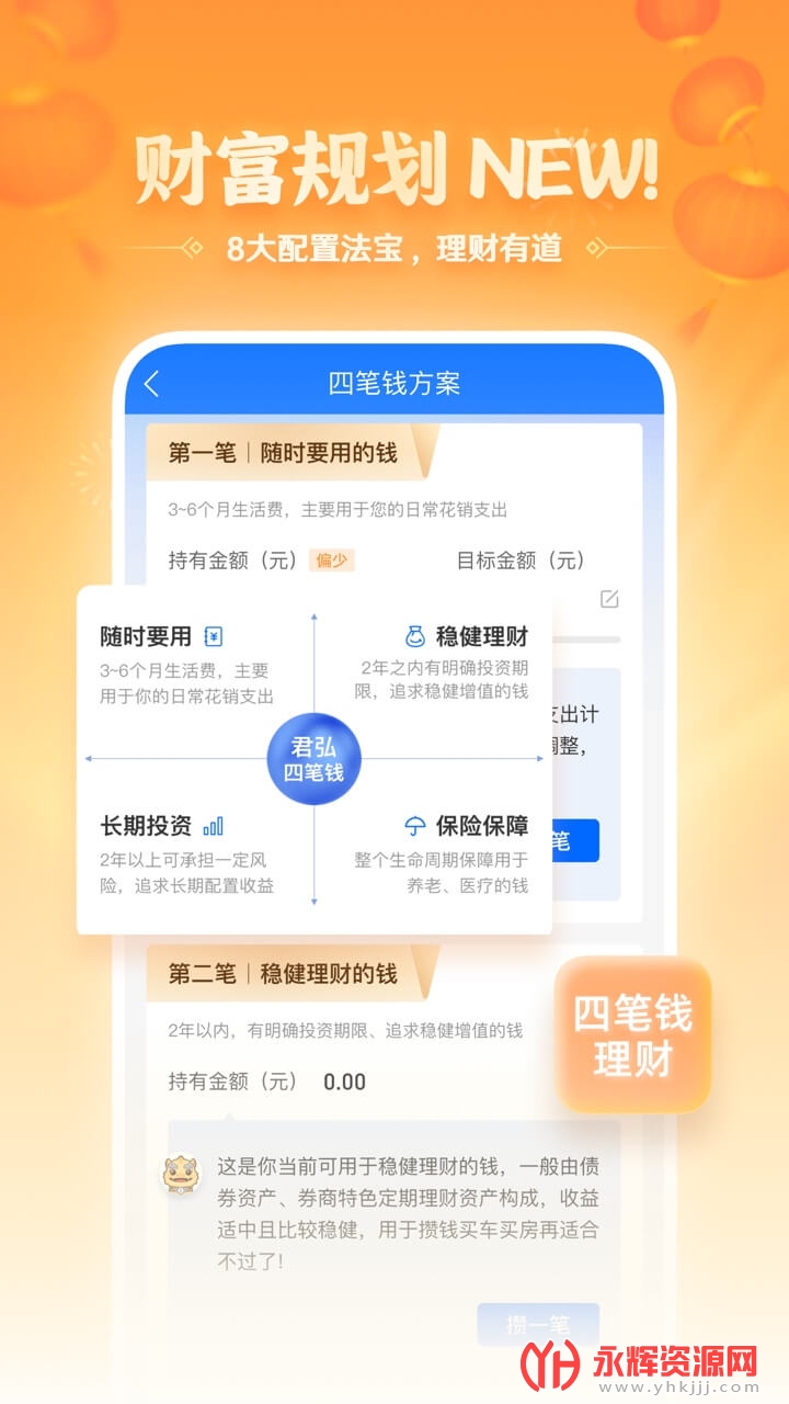 “随时要用、稳健理财、长期投资、保险保障”,为你的“四笔钱”量身定制资产配置方案。