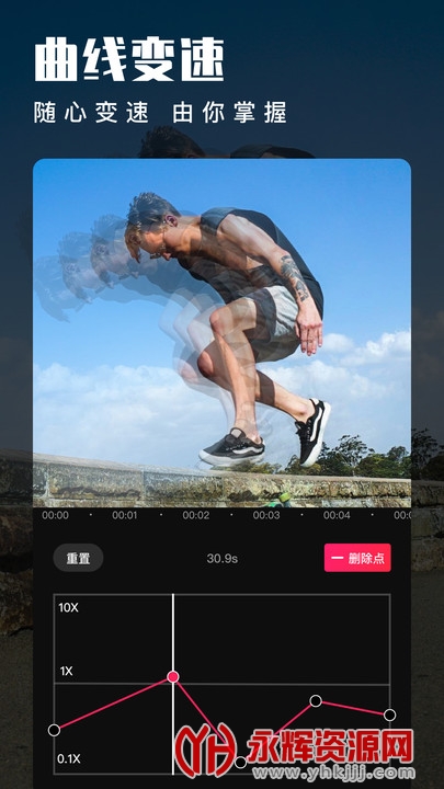 5、曲线变速,曲线调整速度,随心把握视频剪辑速度与节奏。加速的变声趣味,慢速的鬼畜片段,快速进行视频制作,生成好玩视频。
