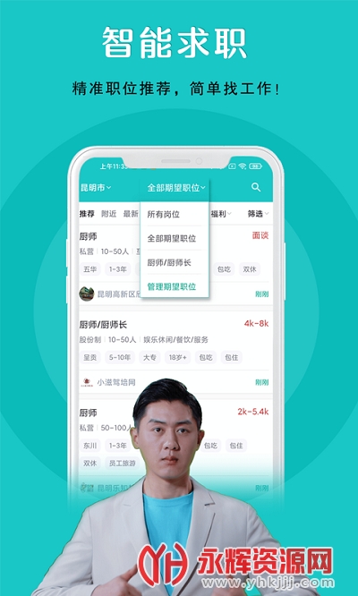 专业的求职招聘找工作app,求职招聘服务覆盖云南、贵州两省所有城市。