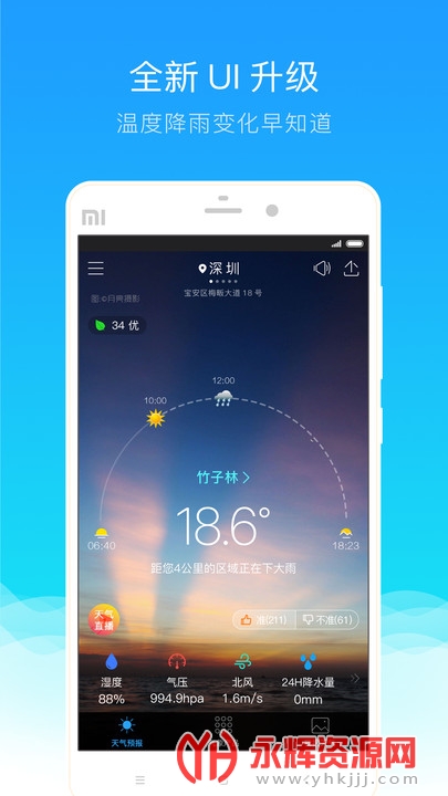 深圳天气app是一款非常优质的天气预报查询软件,使用这款软件可以一键查询当地未来半个月的天气状况,有需要的朋友们不妨来永辉资源网下载吧!