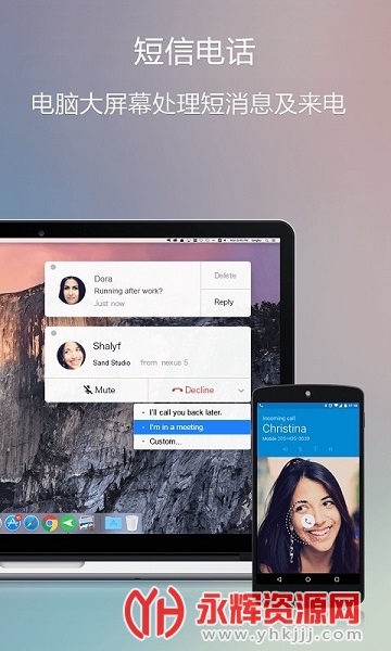 在网页上遥控设备接打电话,接收或推送设备中剪贴板内容,发送URL到设备并在设备的浏览器中打开,等等更多实用功能.