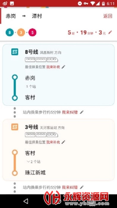 独特的地铁换乘方案:我们支持用户提供方便换乘小tips,在上车时选择换乘距离更短的车厢,步行时间细致到分,提供更加智能的搜索结果。