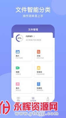 4.支持手机文件分类显示管理:图片,视频,安装包,文档,音乐,压缩包。