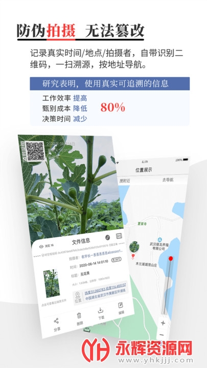 拍摄的照片/视频均自带识别二维码,可直接扫码甄别。