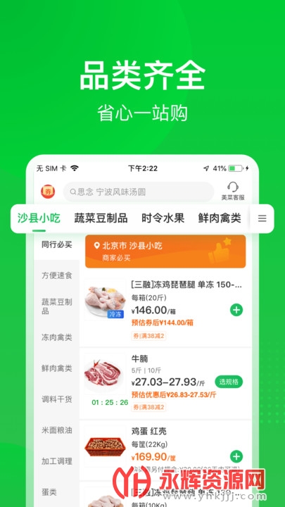 新鲜果蔬、禽蛋肉类、水产冻货、米面粮油、酒水饮料、调料餐厨…超10000种食材及产品!