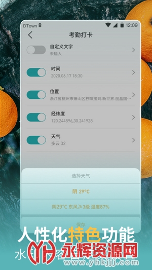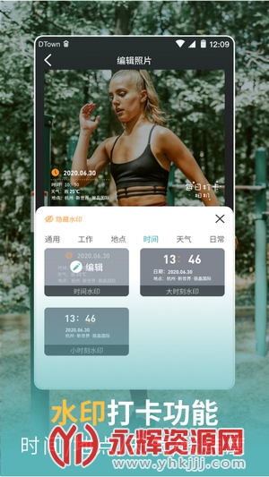 每日打卡相机拥有时间地点水印、天气水印、工作打卡水印等一系列水印贴纸任您挑选;